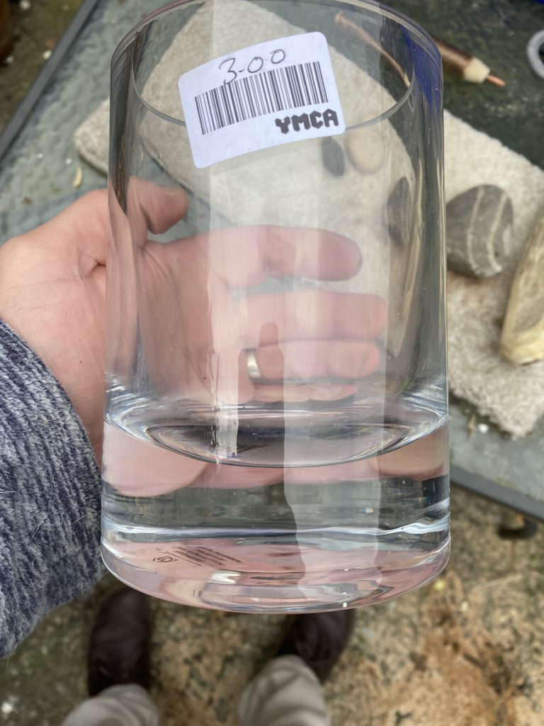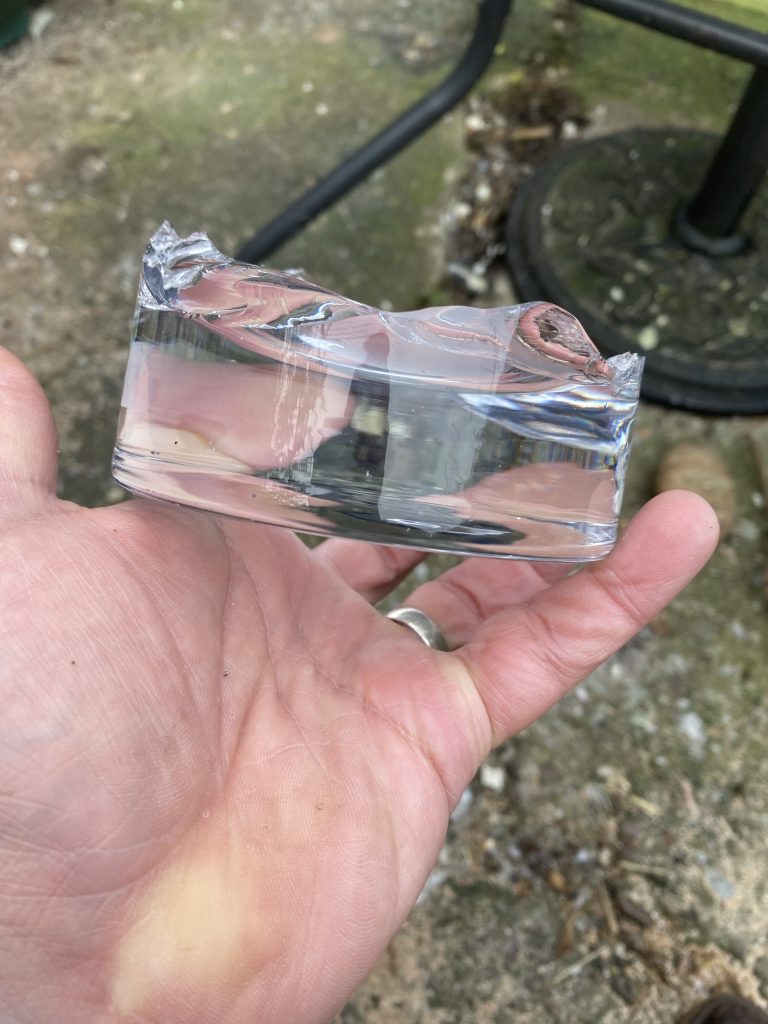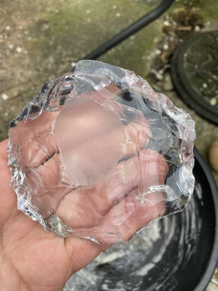 Next up, Jeremy, Ian and Lesley from Salford Archaeology. For various unfortunate reasons, Salford Archaeology has recently closed, and being based in Greater Manchester they had a specialism in Industrial Archaeology. Chatting to Jeremy about sites, I realised they had a lot of glass slag from excavations in Manchester. Fast forward to last week, Jeremy left a large box of glass slag in Ian’s office at the University of Salford and it was passed on to me by Ian’s colleague Lesley . And guess what, it knaps!
