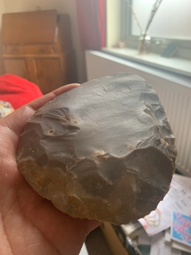 So what about its emic identity? I don’t think the handaxe itself can tell us, but through my visual and haptic engagement with it I would say it is pretty special. It works for me on every level, and it feels like I have expressed something of myself within the production of this object. It was satisfying to make and I am happy that I have this ability to create things of beauty such as this. And I think that its dual heritage adds to its aesthetic and doubles its narrative value. Happy days!