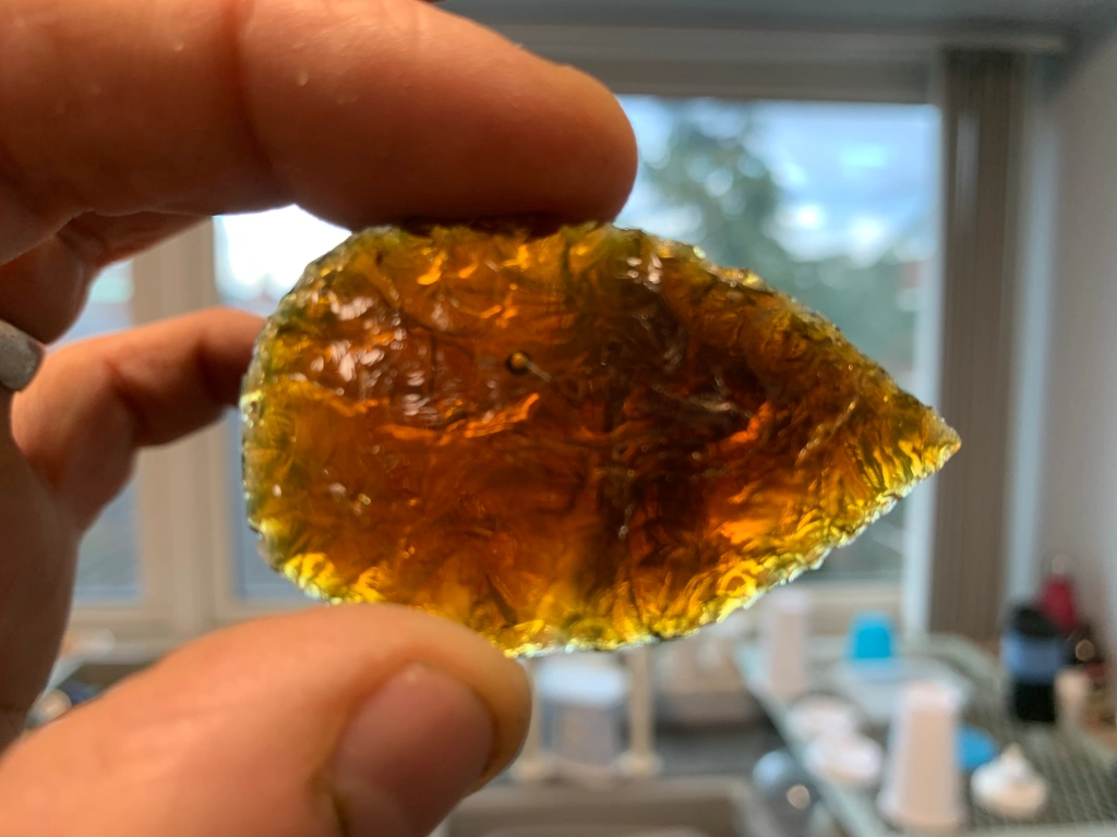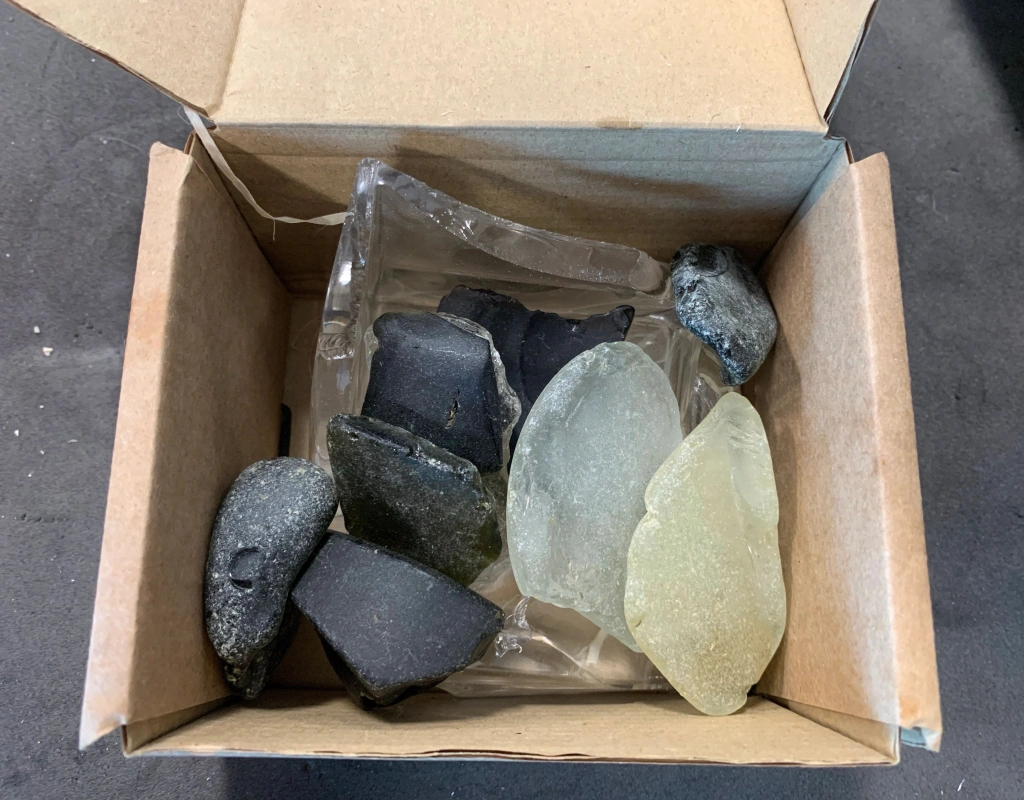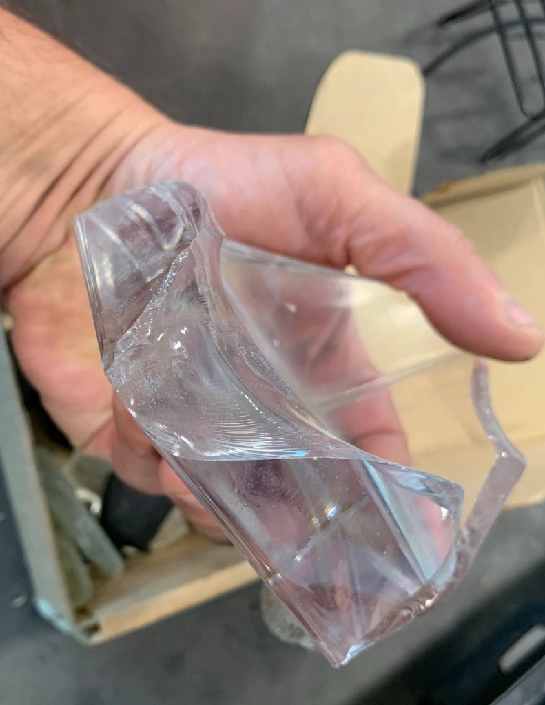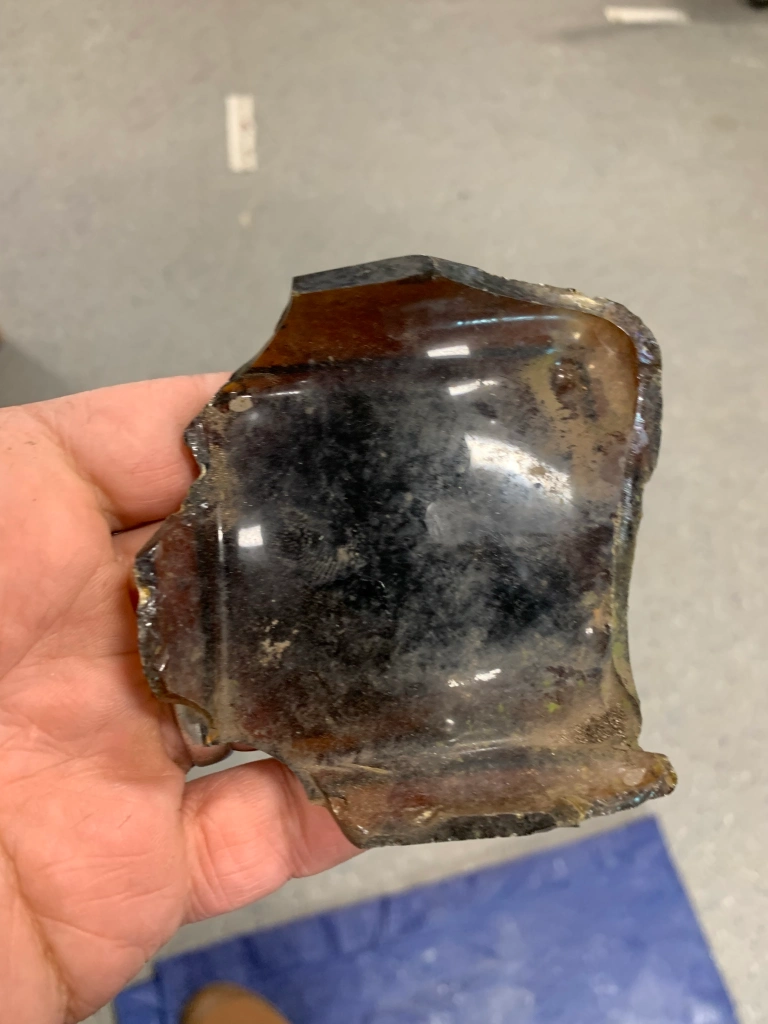 So form and potential function if you like, mirror a Palaeolithic handaxe. However, the material it is made from, a slag glass block excavated from a factory in Manchester, anchors it very much in the modern industrial period. It has two, temporally contradictory etic heritages, or narratives captured within one beautiful object.