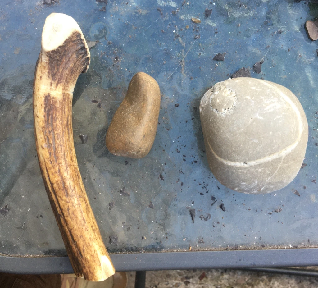 The next stage was a little more tricky, as I could have done with a slightly smaller hammerstone and larger antler hammer for the shaping and thinning process. As you can see, these pieces are characterised by around 50% cortical surface and they are generally smaller.